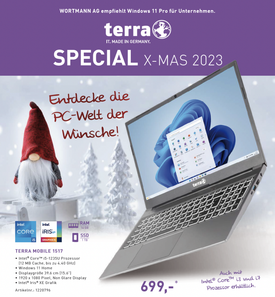 Es ist wieder soweit – Gemeinsam mit unserem System- und Lösungspartner WORTMANN AG geben wir den Startschuss für unser EDV – SPECIAL X-MAS 2023 mit wirklich tollen Aktionspaketen vom 18.11.2023 bis zum 05.01.2024.